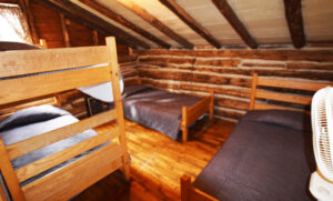It is primitive - more like a big hunting-fishing dormitory for club members than a "cute" cabin in the woods. Goldilocks would have been bouncing hard all night with 14 beds to check out.