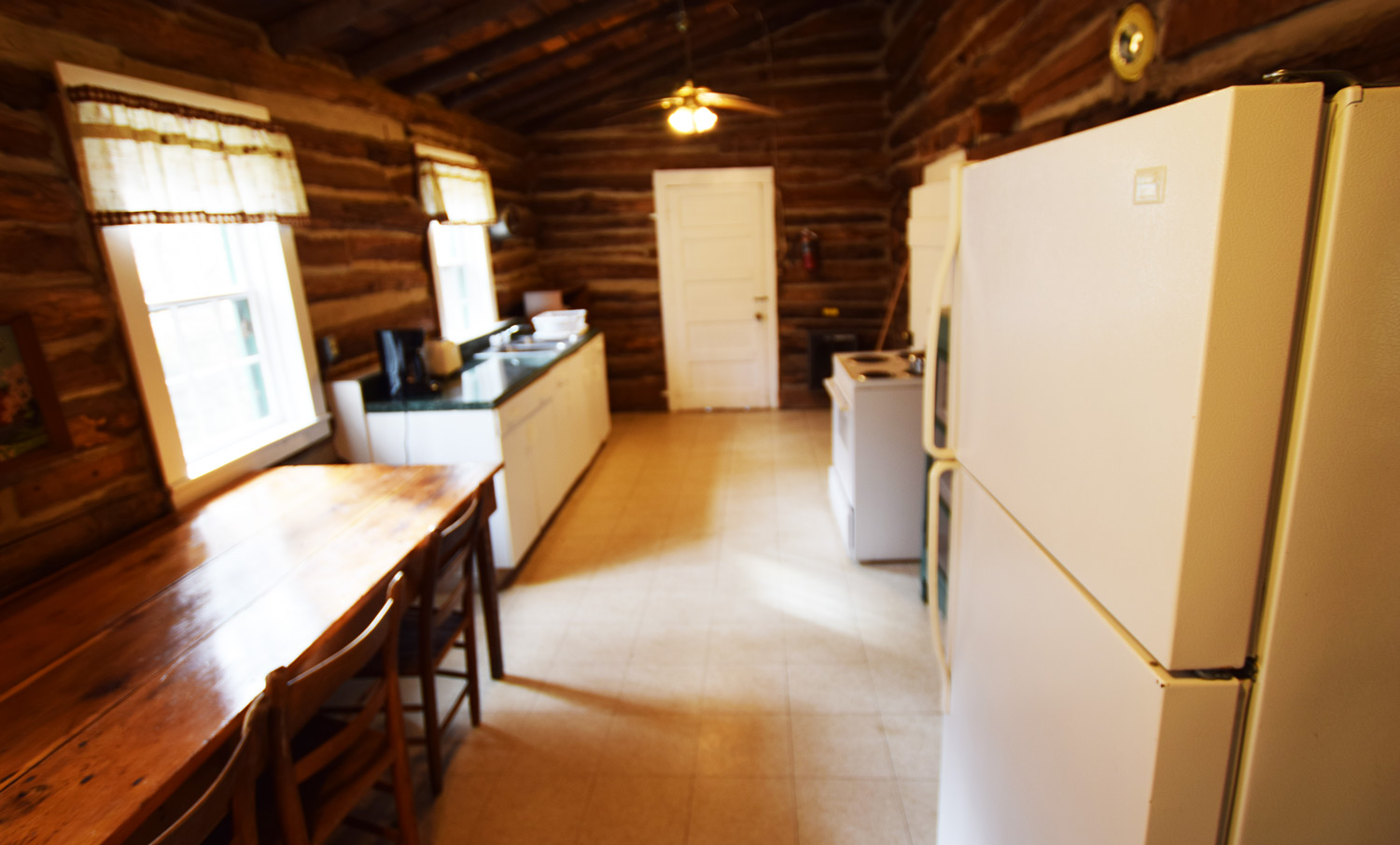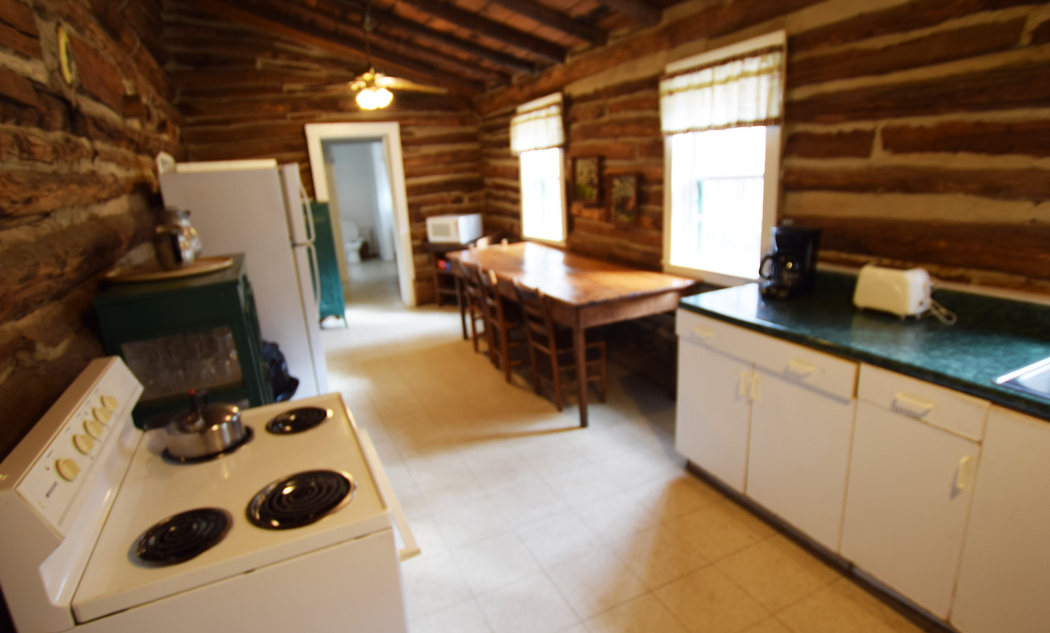 • Full kitchen but primitive kitchen with two ranges - one electric and the other wood burning
