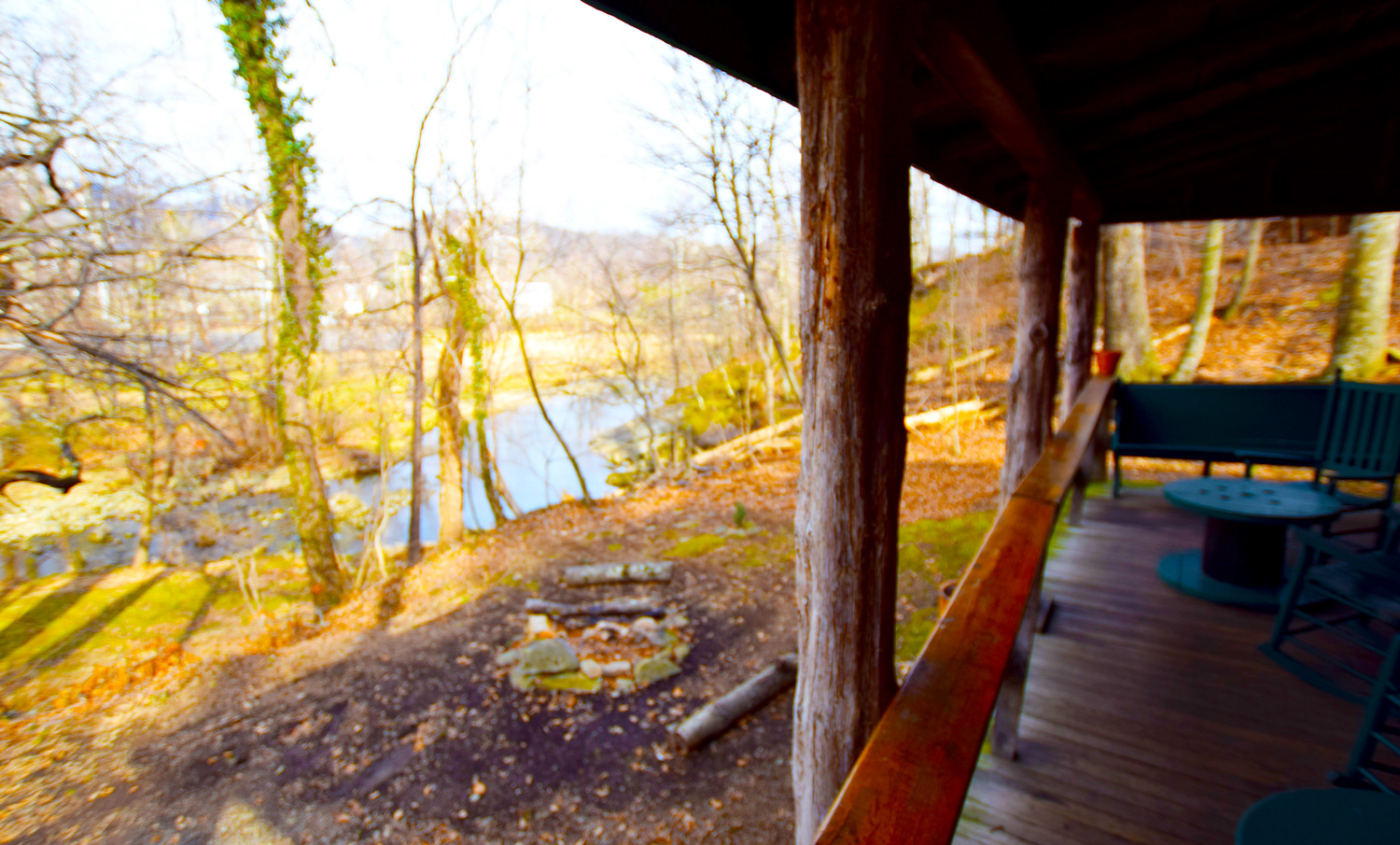 Lower Cabin is just below the Main Lodge and sits 50 feet from Rose River,