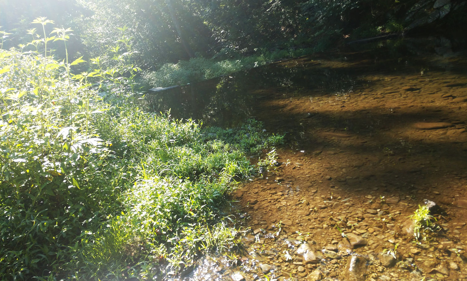 • Stream just across a shrubbery verge