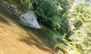 Fishing folk have the stream 100 feet away -  a pristine cold-water mountain trout stream tumbling over river rocks. Fine fishing when working up the mountain.